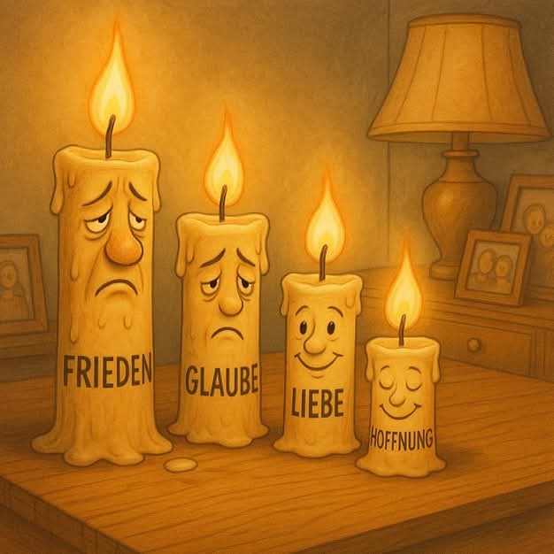 Vier Kerzen, die im Dunkel der Herzen, Licht bringen wollen. Die Hoffnung; auf das Kommen Jesu – den Frieden, beten wir weiter um Herzensfrieden in Welt und Kirche, damit sich verwirklicht, was uns verheißen wurde.